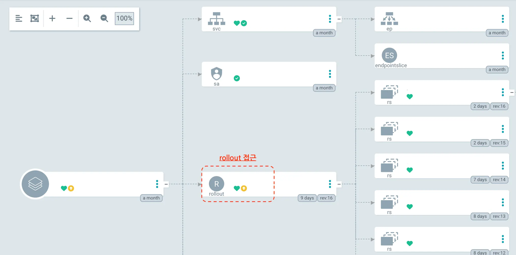 ArgoRollout Extension 을 통합한다면, 하나의 ArgoCD Dashboard 에서 ArgoRollout 에 대한 상세한 배포 내용까지 확인 할 수 있습니다.