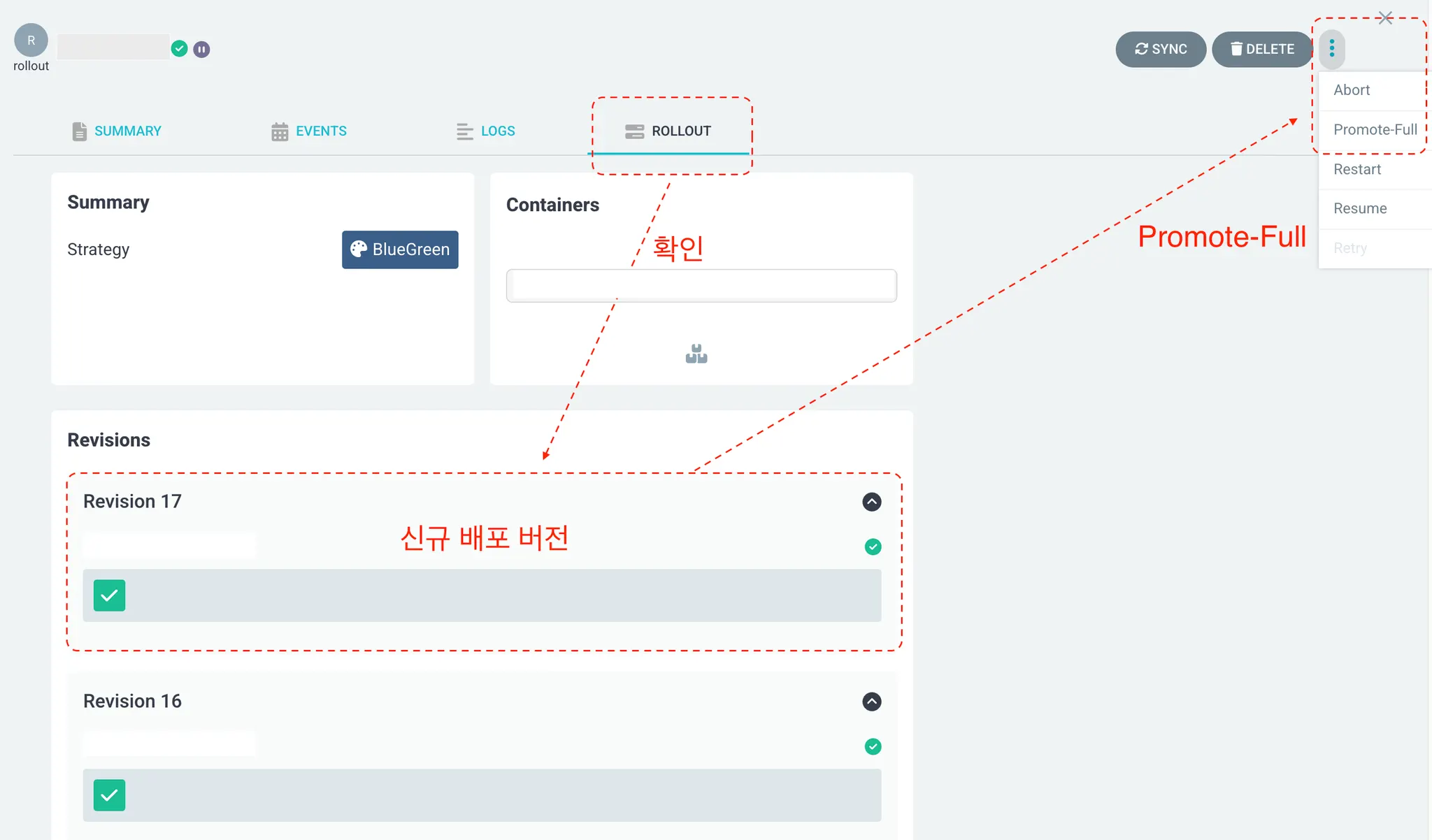 LOGS 메뉴의 오른쪽에 ROLLOUT 메뉴가 추가가 되었습니다.