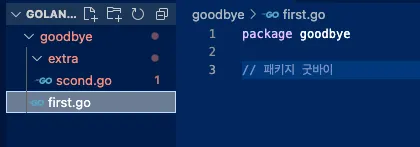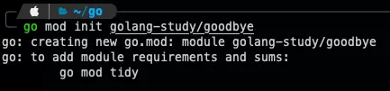 폴더명과 같은 golang-study/goodbye 를 넣어 준다.